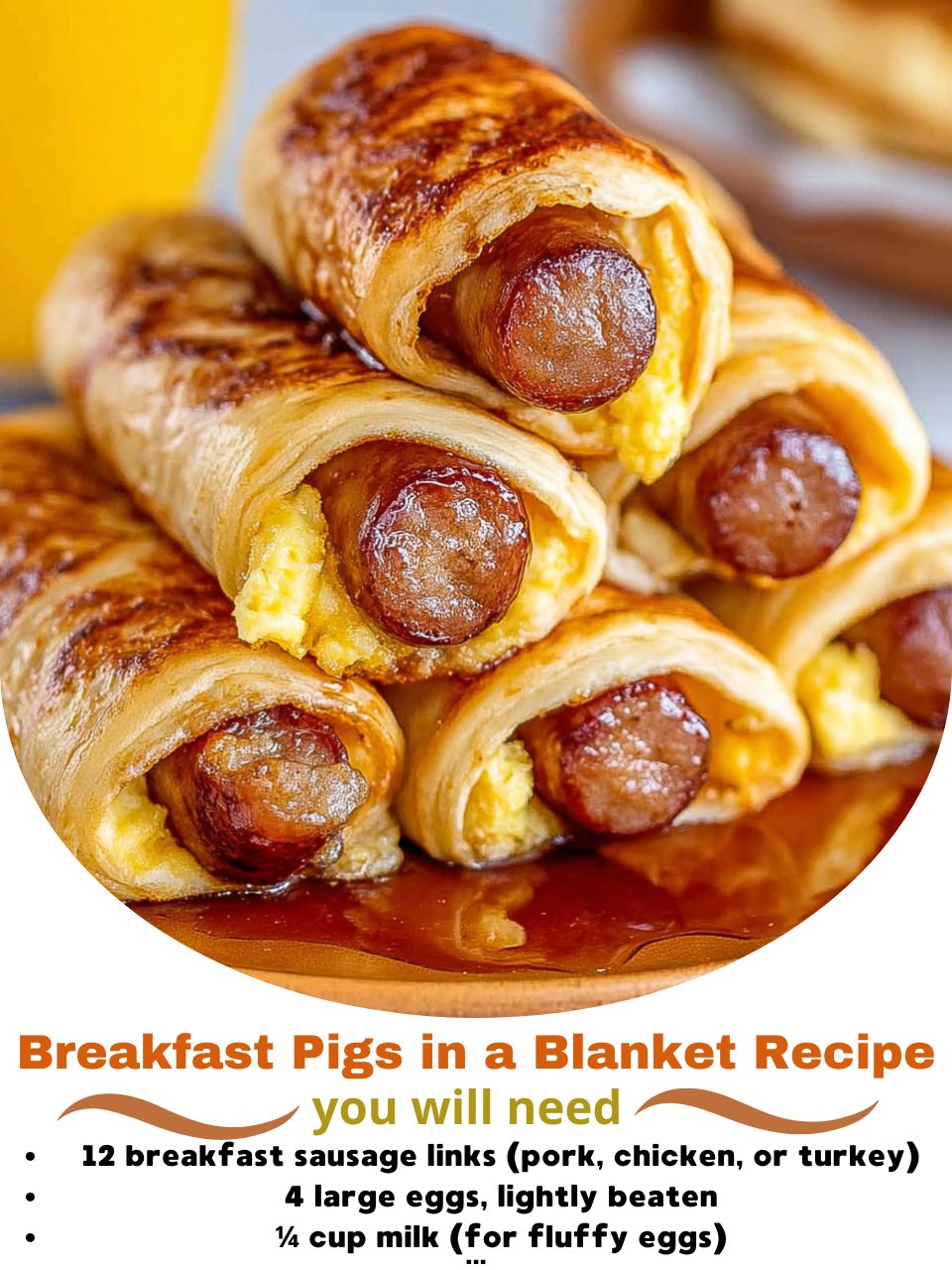 Here’s a delicious and easy Breakfast Pigs in a Blanket recipe — a fun morning twist on the classic! Think fluffy pancake or crescent dough wrapped around sausage, optionally filled with cheese or egg. Great for busy mornings, brunches, or make-ahead breakfasts.