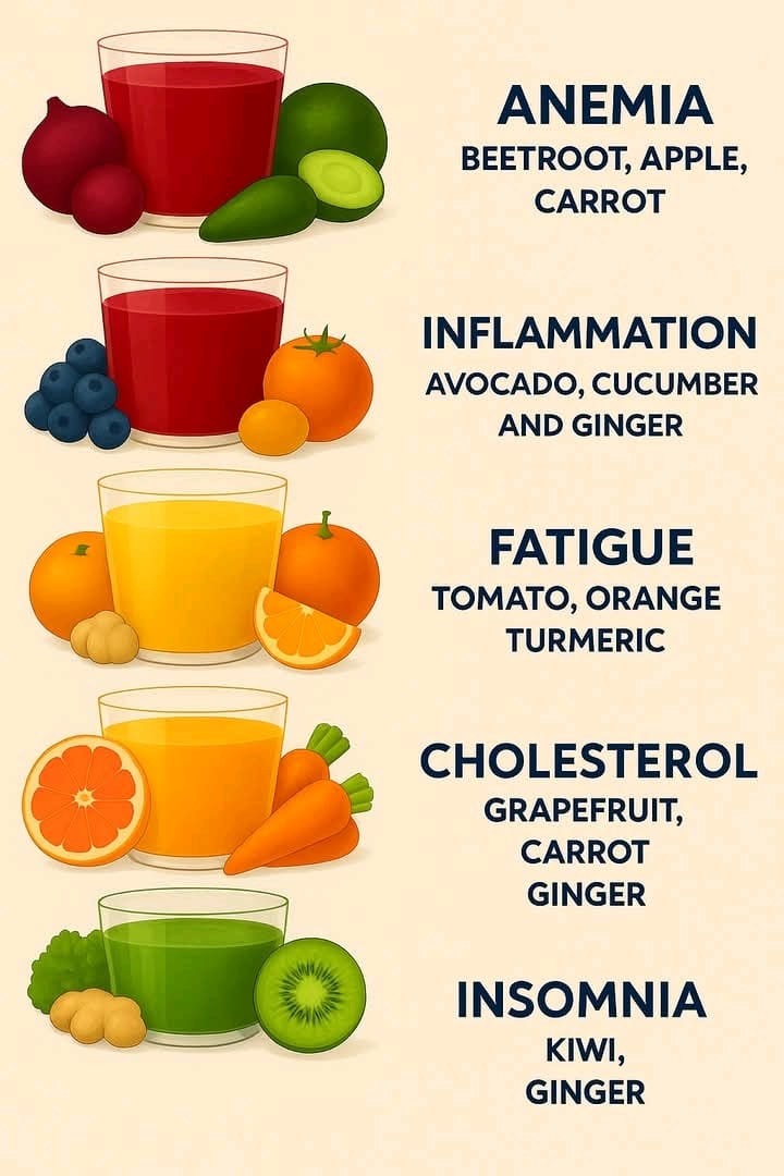 Let’s dive into the possibilities. Research suggests certain fruits and vegetables can support health in gentle ways. For anemia, beetroot is rich in iron, which may help boost red blood cell production, while apple and carrot add vitamins. For inflammation, avocado and cucumber offer hydration and antioxidants, and ginger may reduce swelling. These combinations align with traditional uses of fresh produce to promote vitality, sparking curiosity about their effects.
