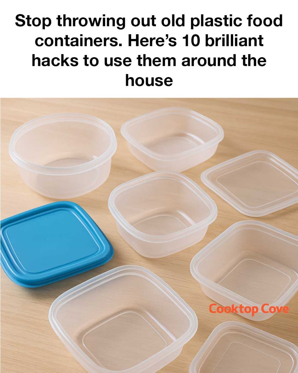Stop throwing out old plastic food containers. Here’s 10 brilliant hacks to use them around the house